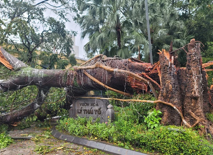 Tại vườn hoa Lý Thái Tổ, cây to hàng chục năm tuổi cũng bị quật gãy
