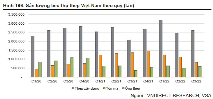 Giá thép toàn cầu tiếp tục giảm trong quý 4/2022 ở tất cả các phân khúc, trong bối cảnh nhu cầu yếu do lo ngại về suy thoái kinh tế toàn cầu và giãn cách xã hội tại Trung Quốc. Tại Việt Nam, tổng sản lượng tiêu thụ thép (bao gồm thép xây dựng, ống thép và tôn mạ) tăng 5% so với cùng kỳ lên 4,05 triệu tấn trong quý 4/2022 so với mức nền thấp trong quý 3/2021 (Hiệp hội Thép Việt Nam - VSA).