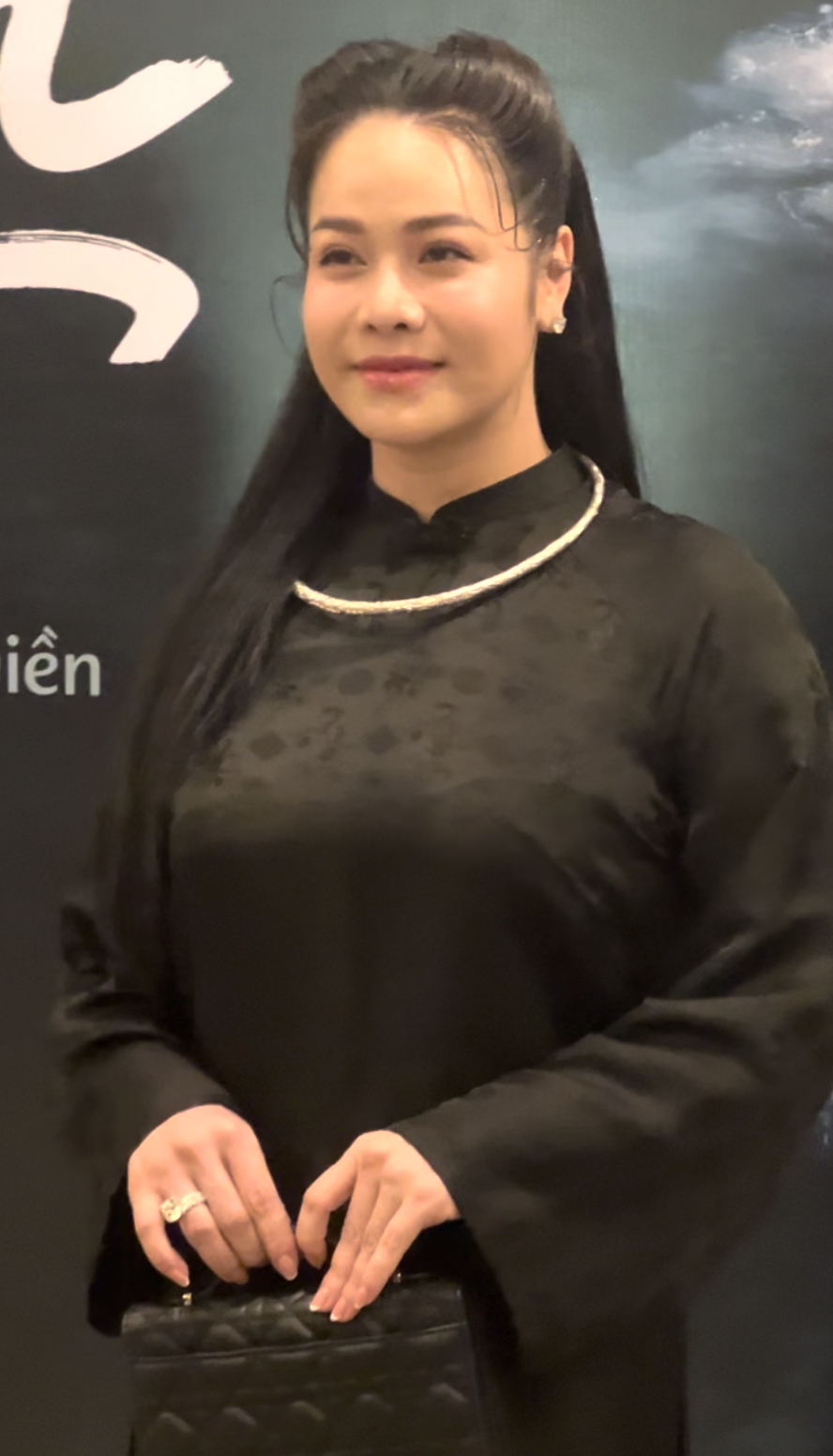 Xuất hiện tại sự kiện, nữ diễn viên lựa chọn chiếc áo dài dáng suông màu đen để khéo léo giấu dáng. Có thể thấy, qua góc máy cam thường, Nhật Kim Anh vẫn ra dáng mẹ bỉm với thân hình thừa cân. Tuy nhiên, cô vẫn ghi điểm bởi gương mặt rạng rỡ, tươi tắn.