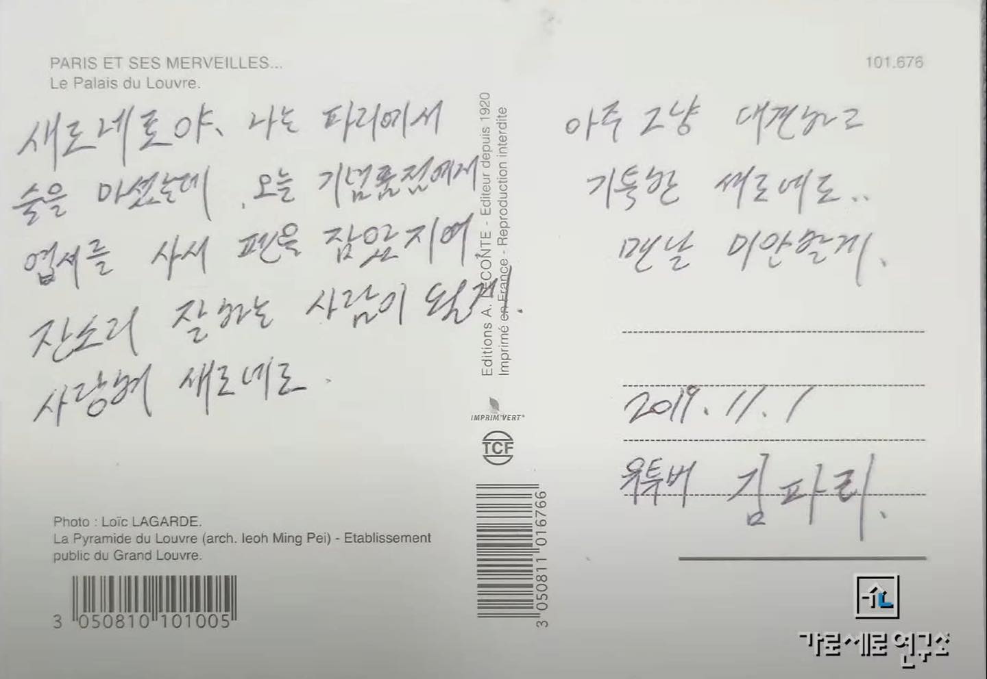 Trong tấm bưu thiếp, nam diễn viên gọi Kim Sae Ron với biệt danh Seronero và tự nhận mình là Kim Paris.