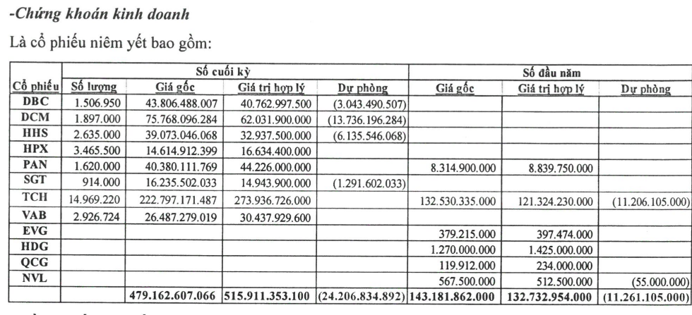 Đáng chú ý, đầu tư tài chính ngắn hạn đạt hơn 601 tỷ đồng. Riêng chứng khoán kinh doanh có giá trị hơn 479 tỷ đồng, gấp 3,3 lần so với đầu năm và chiếm khoảng 25% tổng tài sản của doanh nghiệp.