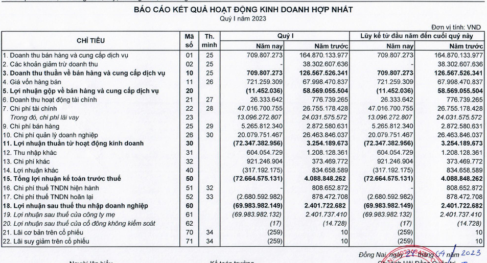 Trong quý đầu năm 2023, Đầu tư LDG kinh doanh thua lỗ 69,98 tỷ đồng, nguyên nhân chủ yếu do kinh doanh dưới giá vốn và chi phí tài chính tăng cao.