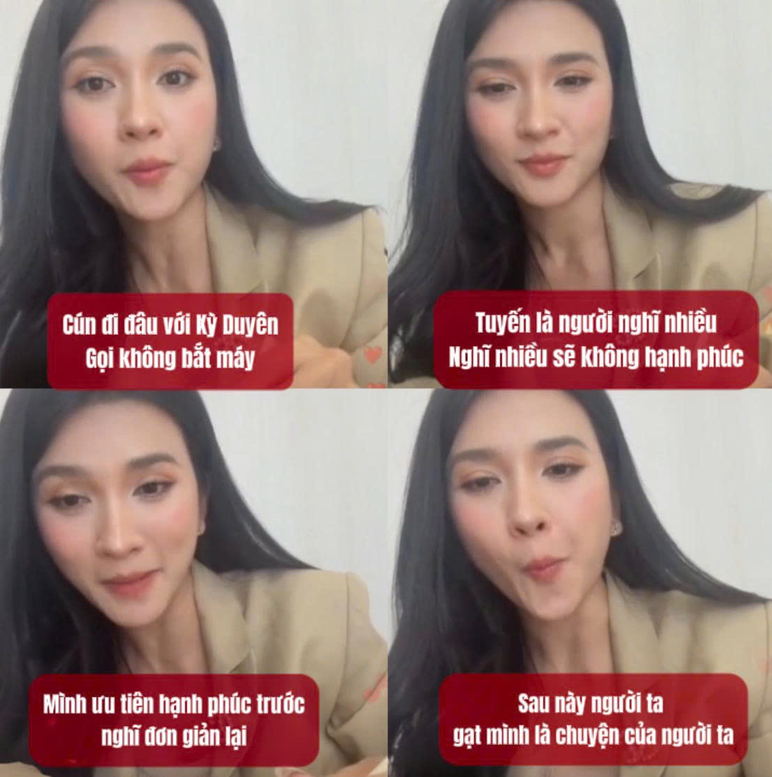 Mới đây, Kim Tuyến đã có buổi livestream trò chuyện với cư dân mạng. Đáng chú ý, trong đoạn clip, nữ diễn viên không ngại nhắc đến "nửa kia" và ghen ra mặt khi chia sẻ Cún đi hẹn hò với Hoa hậu Kỳ Duyên nhưng cô gọi điện không nghe máy.
