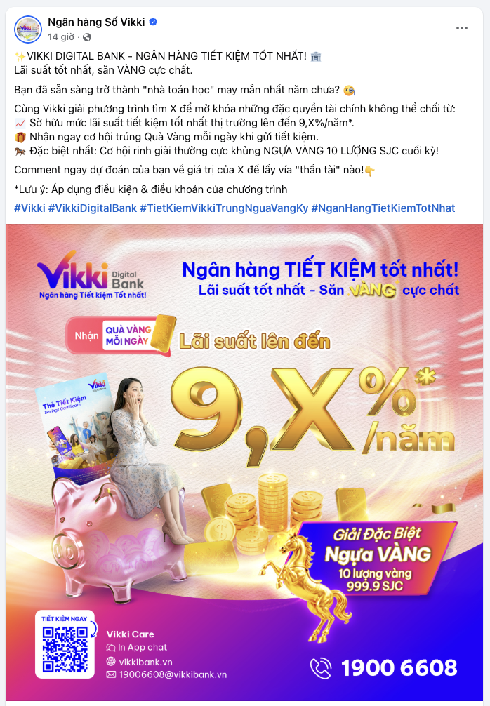 VikkiBank tung chương trình ưu đãi lãi suất khủng với lãi suất trên 9%/năm với nhiều kỳ hạn.
