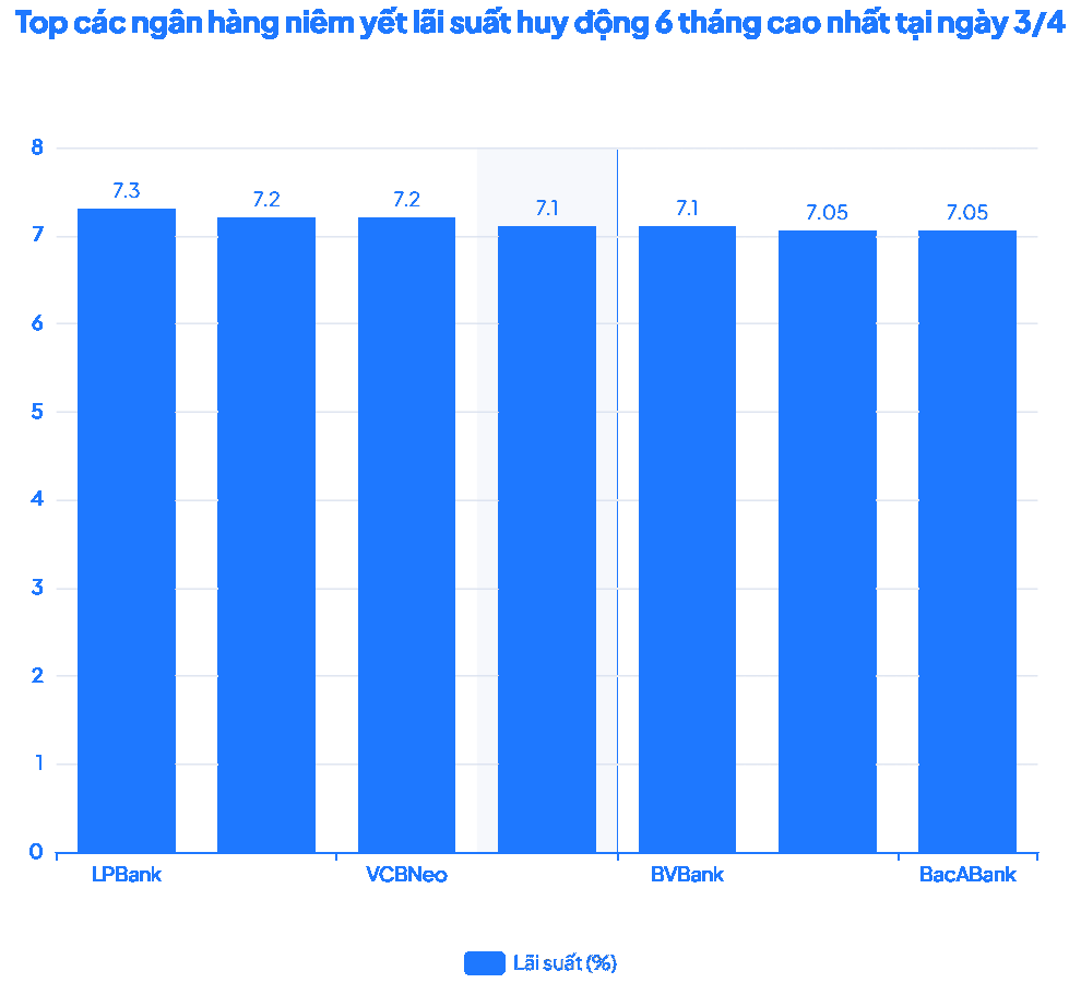 Không đứng ngoài cuộc đua, VPBank cũng triển khai các chương trình ưu đãi tương tự. Mặc dù lãi suất niêm yết cho kỳ hạn 6 tháng ở mức 7,7% mỗi năm, nhưng ngân hàng này sẵn sàng cộng thêm từ 1 đến 1,1%, qua đó đưa mức lãi suất thực nhận lên khoảng 8,7 đến 9% mỗi năm.