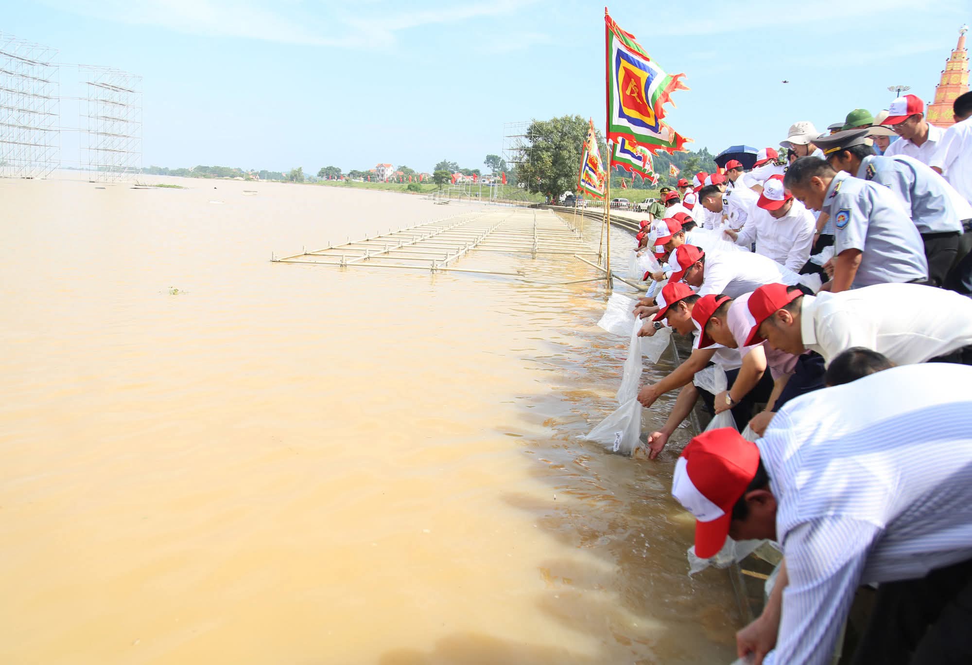 Cùng với đó, nghi thức thả cá tái tạo nguồn lợi thủy sản trên sông Lục Đầu được thực hiện, với khoảng 7.000 con cá các loại như chép, trắm… được thả xuống dòng sông lịch sử.