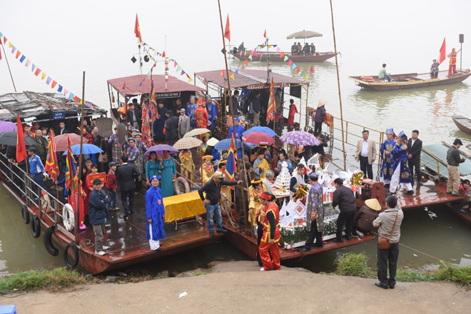 Ngày 14 tháng Hai: 9 giờ sáng khai hội. Dân làng dâng lễ Tam sinh (Trâu, Dê, Lợn ) sau đó hai đoàn rước thực hiện chương trình cấp thủy, rước nước và rước bộ. Đoàn cấp thủy, thực hiện nghi thức lấy nước dòng Nhị Hà vào chóe cúng dâng vào đại đình, dùng để cúng tế cả năm. Đoàn rước bộ, dâng hương tại Kim Trúc Tự, nhà thờ Bác Hồ, Đền Mẫu Bản Hương.