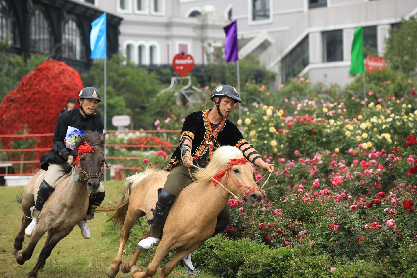 Tại đường đua độc đáo số 1 thế giới quanh Thung lũng hoa hồng, những chú ngựa xuất sắc nhất Tây Bắc sẽ tranh tài trên những cung đường đẹp như mơ, phi nước đại qua những bụi hoa hồng lộng lẫy. Còn du khách thì phấn khích cổ vũ, cùng tương tác, chụp ảnh và tham gia minigame để nhận về các phần quà giá trị.