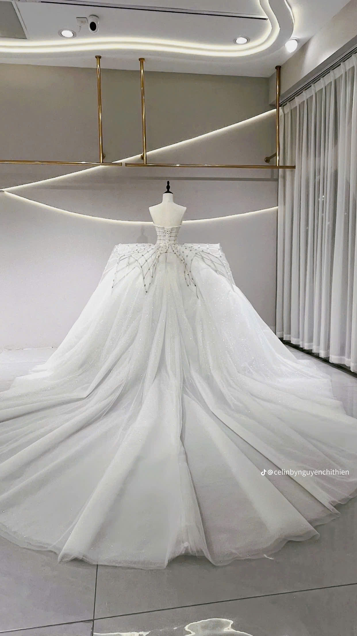 Được biết, chiếc váy lộng lẫy hệt công chúa này mới hoàn thiện 80% trước khi được chuyển đến Thanh Thủy để diện trong giây phút quan trọng.