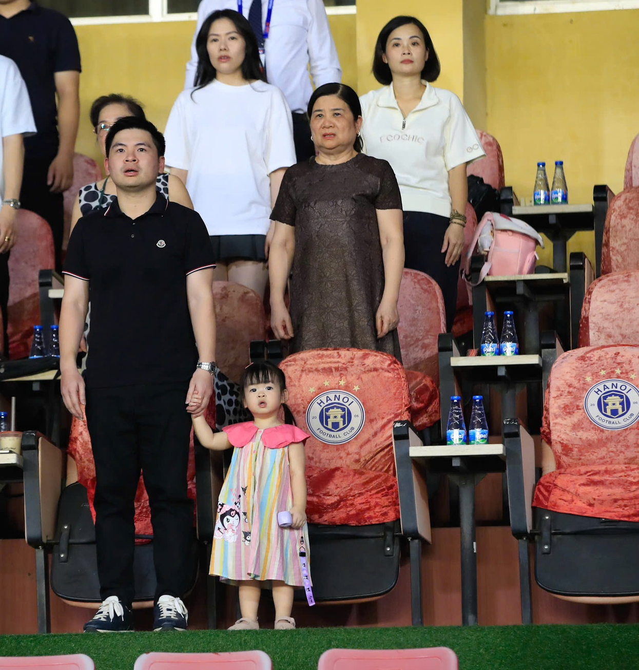 Có mặt trên sân Hàng Đẫy tối 20/9 trong trận đấu giữa CLB Hà Nội và Thể Công Viettel ở vòng 4 V.League 2025/26, gia đình Đỗ Mỹ Linh lập tức gây sốt. Đặc biệt, sự xuất hiện của cô nhóc Titi – con gái đầu lòng của nàng Hậu và chồng chủ tịch khiến mọi người khó rời mắt.