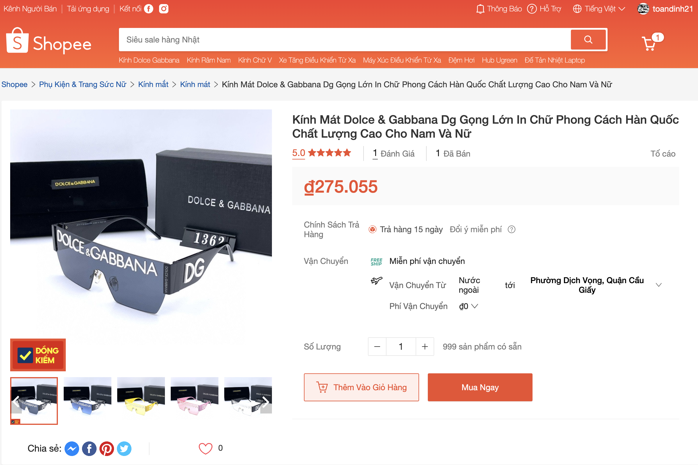 Kính Dolce & Gabbana (D&G) trên Shoppe được bán rẻ hơn vài chục lần so với hàng chính hãng.