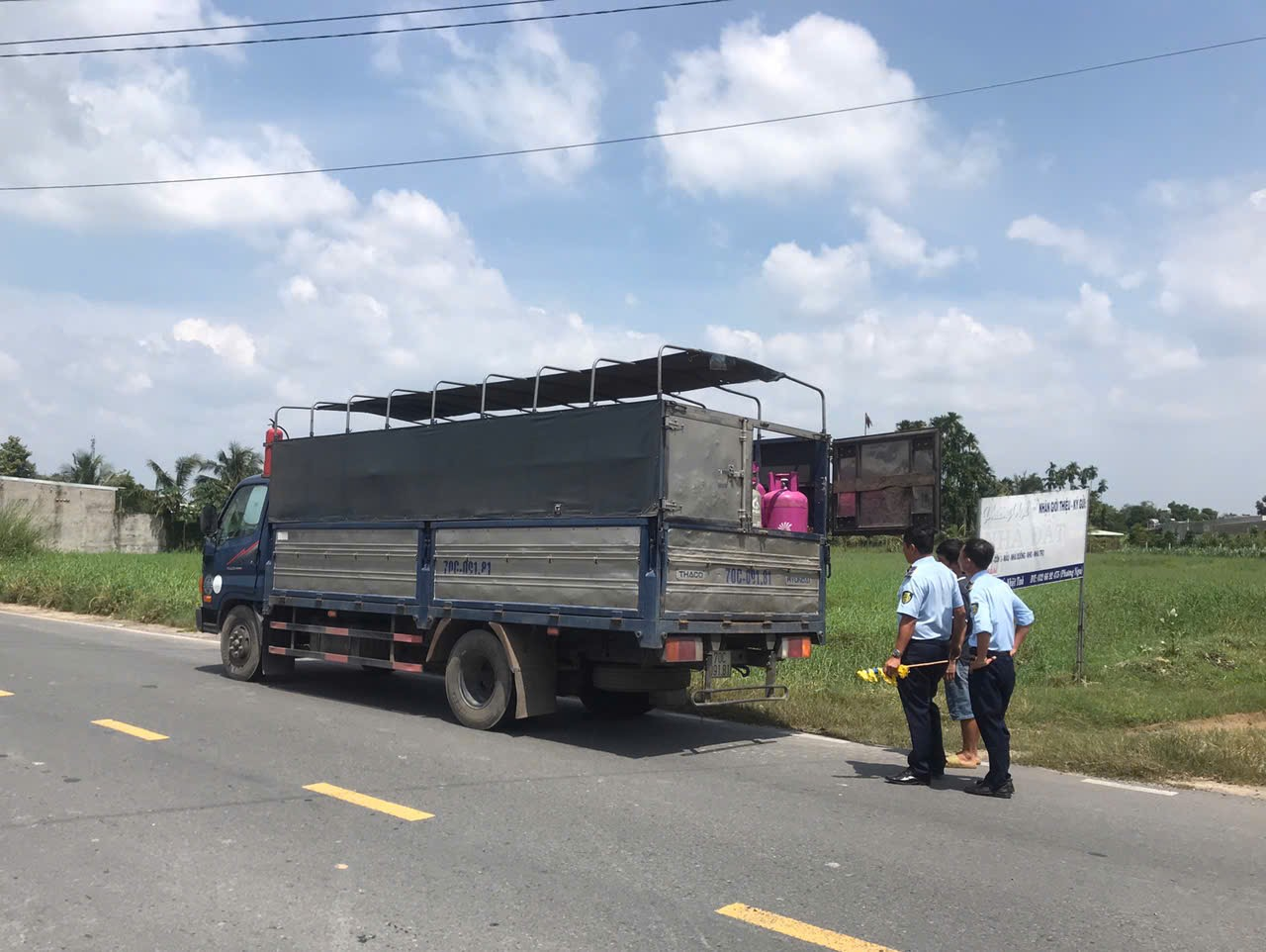 Ngày 24/10/2024, nhận được tin báo của cơ sở và qua công tác giám sát quản lý địa bàn. Đoàn kiểm tra Đội Quản lý thị trường số 1 tiến hành khám phương tiện vận tải, đồ vật theo thủ tục hành chính đối với toàn bộ xe ô tô tải biển kiểm soát 70C-091.81 do ông Nguyễn Văn Tiền điều khiển và tất cả hàng hóa đang vận chuyển trên xe ô tô tải. Kết quả khám phát hiện trên phương tiện đang vận chuyển 198 chai LPG có chứa LPG loại 12kg và loại 45kg của các nhãn hiệu JP, VT, Dầu khí, Thành Tài nghi có dấu hiệu giả mạo nhãn hiệu hàng hóa, bao bì hàng hóa.