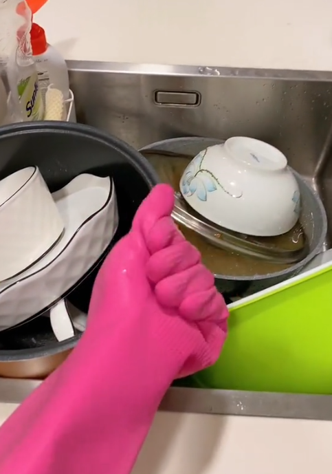 Trong khi chủ nhà đi vắng, cô còn thể hiện sự đảm đang khi dọn dẹp, giặt đồ, rửa bát,....