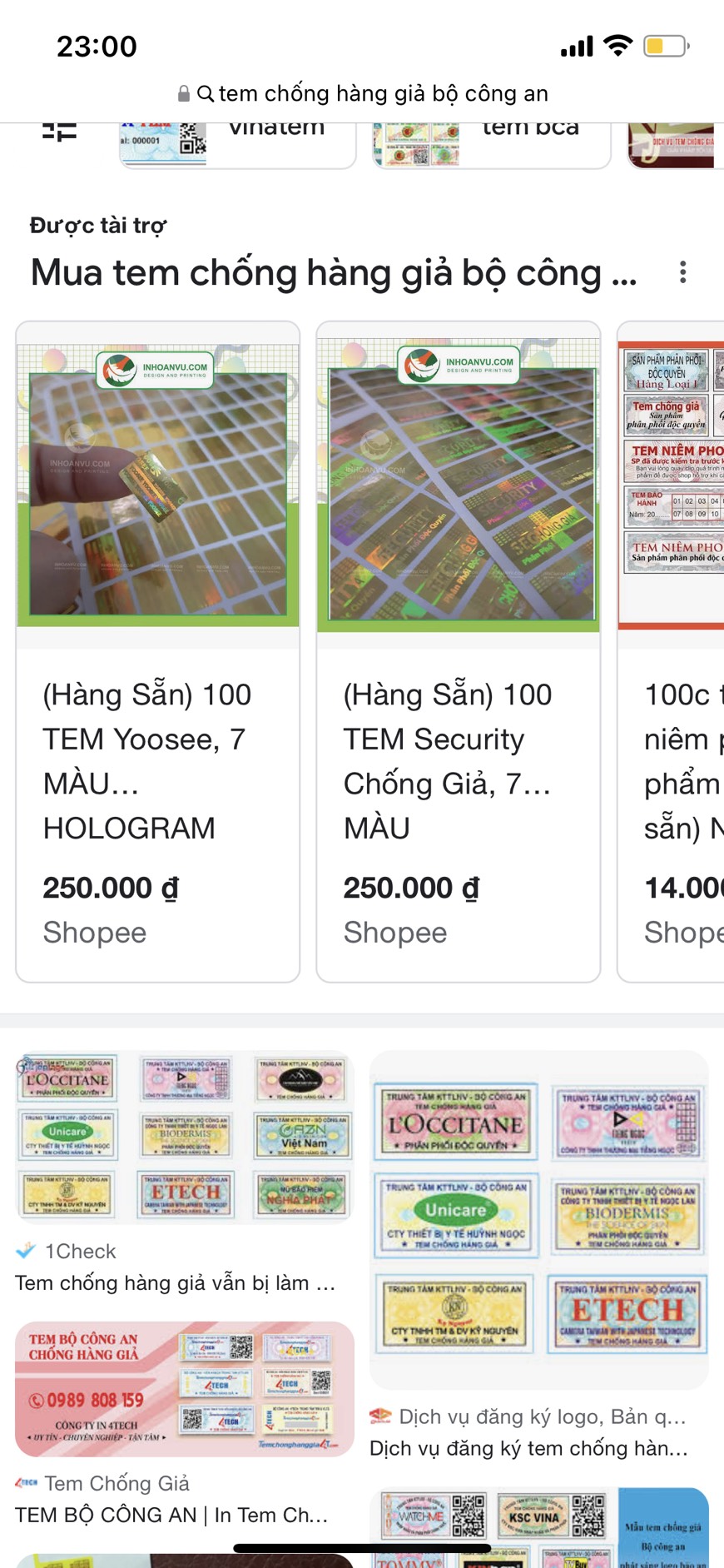 Chỉ với một vài thao tác đơn giản, khách hàng có thể mua ngay cho mình bất kỳ loại “tem chống hàng giả” nào theo yêu cầu, thậm chí cả “tem chống hàng giả” do Bộ Công an cấp (dù đã dừng phát hành). Chính bởi sự dễ dàng này đã khiến người tiêu dùng không thể phân biệt đâu là hàng thật, đâu là hàng giả.