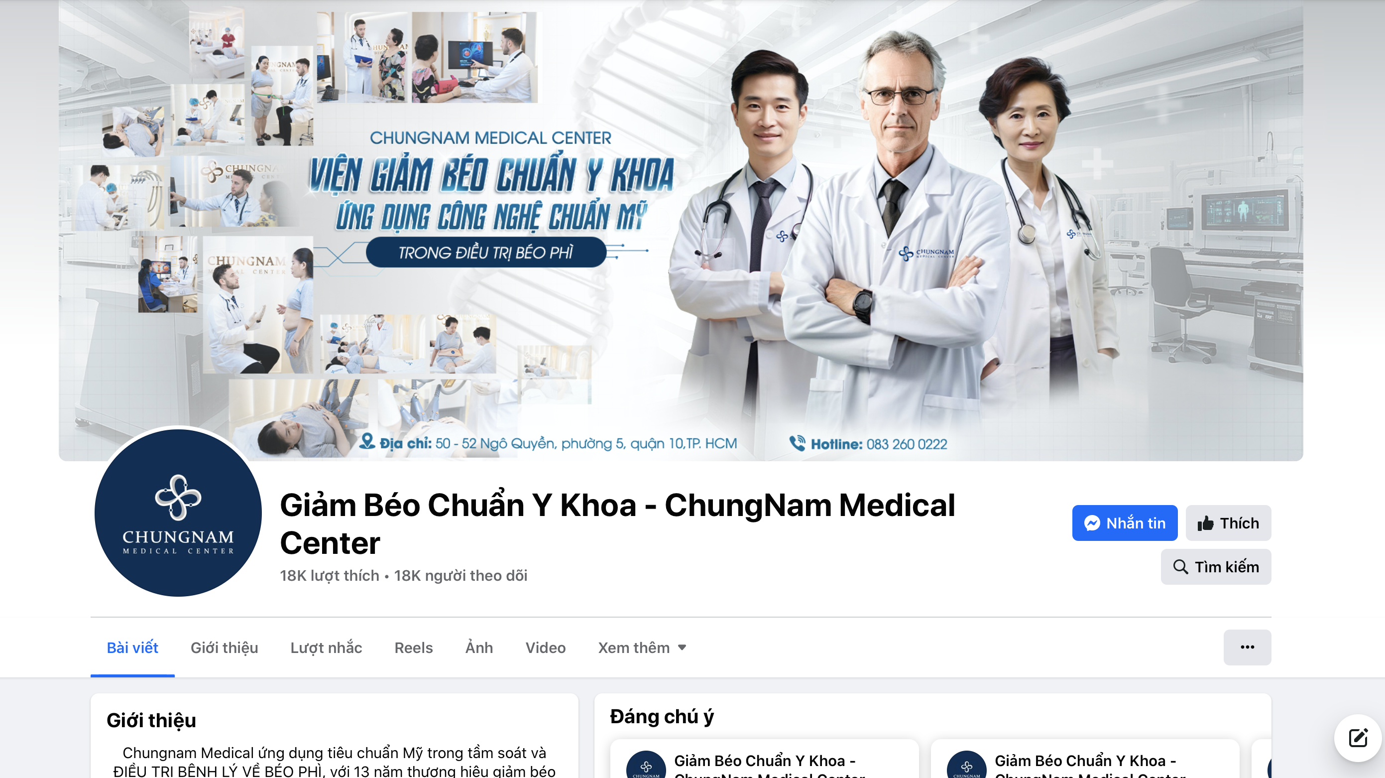 Ghi nhận của PV tại trang facebook “ Phòng Khám Giảm Béo ChungNam Medical Một Lần Công Nghệ Cao”, hiện vẫn đăng tải các thông tin quảng cáo “Chungnam Medical Center là viện giảm béo theo tiêu chuẩn Hàn Quốc áp dụng công nghệ hiện đại đầu tiên tại Việt Nam, với sứ mệnh mang lại dịch vụ giảm béo chăm sóc sức khoẻ và điều trị chuẩn quốc tế dành cho bệnh lý Béo Phì”.