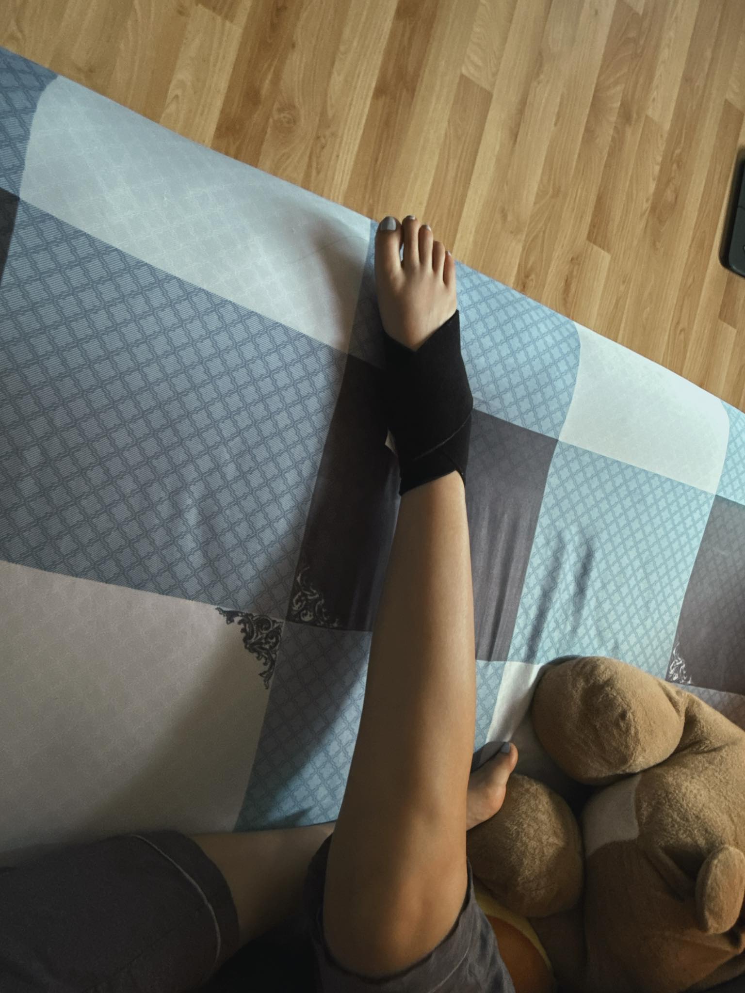 Theo đó, trên trang cá nhân, Mai Phương Thúy đăng tải hình ảnh bàn chân bị quấn băng cố định kèm dòng chú thích hóm hỉnh: "Giày độn mang lại cho tôi niềm đau".
