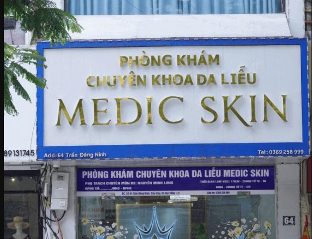 Theo Quyết định xử phạt số 50/QĐXPVPHC ngày 07/3/2024 của Thanh tra Sở Y tế Hà Nội, Phòng khám chuyên khoa Da liễu Medic Skin (Tầng 1, 2 số 64, đường Trần Đăng Ninh, phường Dịch Vọng, quận Cầu Giấy, thành phố Hà Nội) đã thực hiện quảng cáo dịch vụ đặc biệt mà không được cơ quan Nhà nước có thẩm quyền xác nhận nội dung trước khi thực hiện quảng cáo theo quy định.