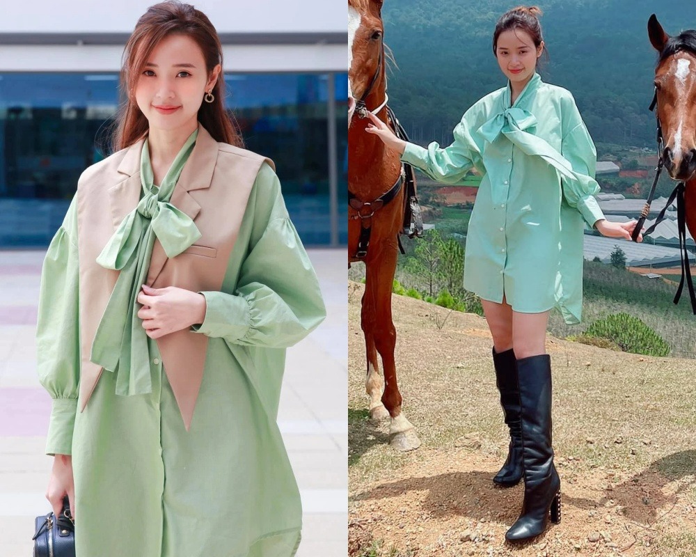 Chiếc sơ mi thắt nơ bằng vải voan mềm mại được Midu chọn diện khi tham dự chương trình truyền hình, khi khác, cô lại lên đồ sang chảnh dạo phố.