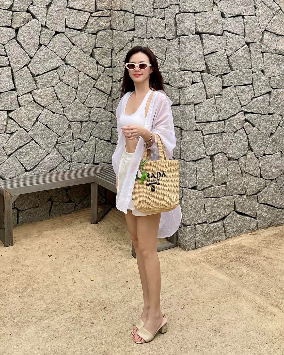 Đáng nói, chiếc túi kiểu dáng tote đơn giản với logo Prada Milano in nổi bật có vẻ "được lòng" Midu cực kì. Netizen nhiều lần bắt gặp Midu trưng dụng chiếc túi này khắp nơi đi dạo biển Nha Trang, mua sắm tại TP.HCM…
