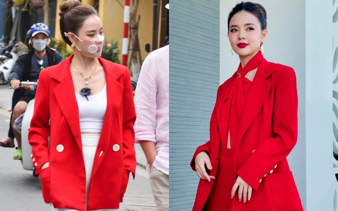 Midu biến tấu 2 style khác biệt với cùng 1 mẫu blazer tông đỏ nổi bần bật. Khi thì cô lên đồ năng động với blazer, crop top và quần ống suông. Khi thì Midu lại lên đồ sang chảnh, kiêu kỳ khi mix blazer với áo yếm và quần ống suông đều mang tông đỏ nổi bần bật.