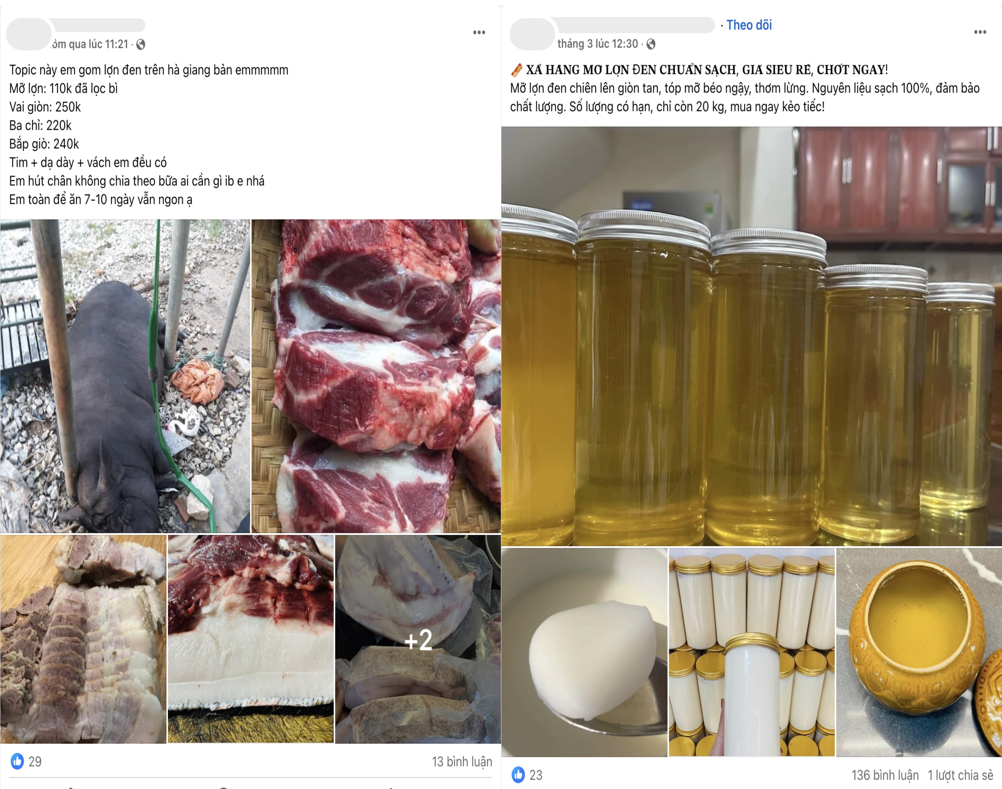 Mỡ heo đen đen được rao bán trên mạng xã hội.