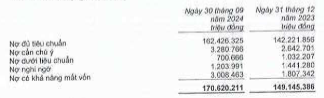 Trong khi, nợ dưới tiêu chuẩn (nợ nhóm 3) là 700 tỷ đồng, giảm 32,12% và nợ nghi ngờ (nợ nhóm 4) là 1.204 tỷ đồng, giảm 16,46% thì nợ có khả năng mất vốn (nợ nhóm 5) tăng mạnh từ 1.807 tỷ đồng lên 3.008 tỷ đồng.