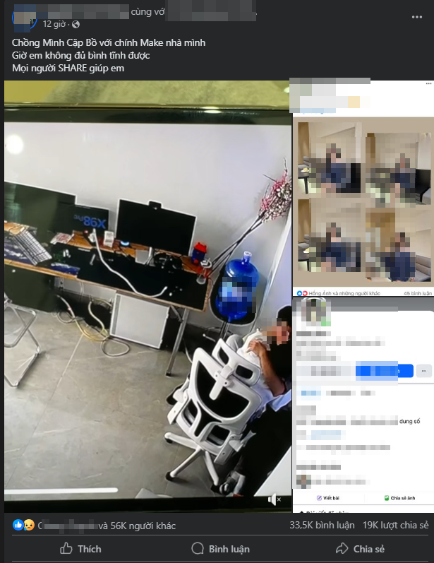 "Chả phải đây là lần đầu, mà 5 tháng rồi, họ lén lút với nhau như vậy. Cả chiều và tối tôi ngồi check camera, thì họ liên tục làm chuyện đáng xấu hổ.