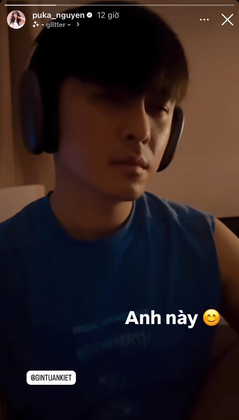 Hint đã trở thành mẹ bỉm của Puka càng lộ rõ hơn khi mới đây, nữ diễn viên đăng tải khoảnh khắc ông xã trên story. Qua hình ảnh cho thấy Gin Tuấn Kiệt xuất hiện với giao diện gương mặt bơ phờ, mắt thâm... như một ông bố bỉm thực thụ khi thường xuyên phải thức đêm để chăm con.