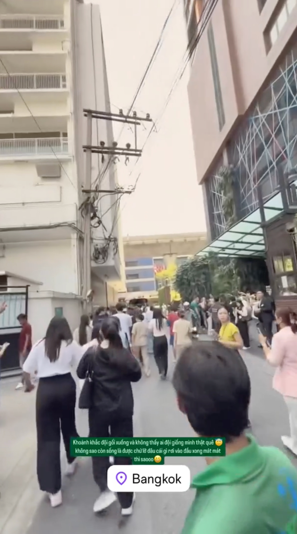 Ca sĩ Bùi Công Nam không giấu được sự hoảng hốt: "Lần đầu tiên trong đời trải nghiệm một trận động đất ở Hà Nội. Tôi mới chạy từ tầng 24 xuống. Kinh khủng mọi người ơi. Tim đến giờ vẫn còn đập nhanh. Chung cư lắc lư giống như cái võng vậy".