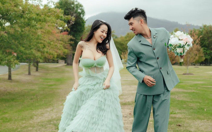 Mới đây, Ngân 98 chia sẻ đoạn clip mới trên trang trang cá nhân gây chú ý. Theo đó, trong clip, người đẹp khoe khoảnh khắc đi thử đồ cưới với Lương Bằng Quang tại nước ngoài. Cả hai cùng mặc trang phục cùng tông màu xanh mint mát mẻ.