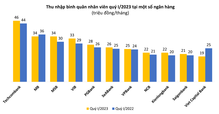 Đầu năm 2023, số liệu thống kê từ báo cáo tài chính hợp nhất của 28 ngân hàng cho thấy, chi phí bình quân hàng tháng của các ngân hàng chi cho nhân viên là 28 triệu đồng, tăng 5% so với cùng kỳ năm ngoái.