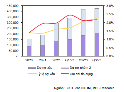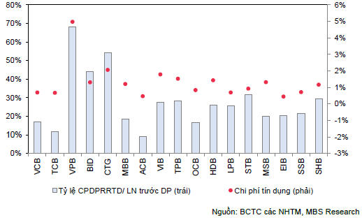 Nguyên nhân MBS đưa ra đến từ việc dư địa trích lập của các ngân hàng sẽ không còn nhiều khi KQKD cả năm 2023 được dự báo sẽ kém khả quan, do đó khi hiệu lực của TT02/2023/NHNN-TT hết hạn vào 30/06/2024 (đang được NHNN cân nhắc gia hạn) áp lực trích lập cho các khoản nợ tái cơ cấu hoặc các khoản nợ xấu không được tái cơ cấu sẽ gia tăng.