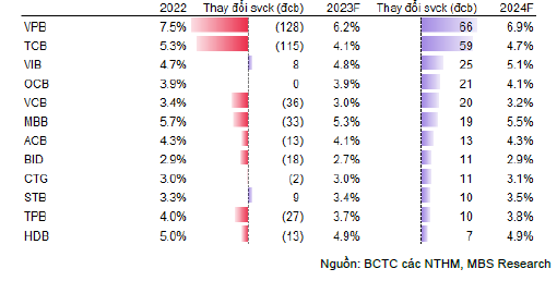 Dự báo NIM của các ngân hàng MBS Research đang theo dõi