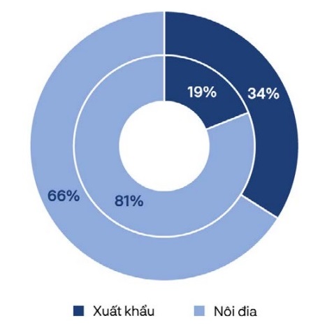 Tỷ trọng tiêu thụ thép nội địa - xuất của quý I/2024 và quý I/2025