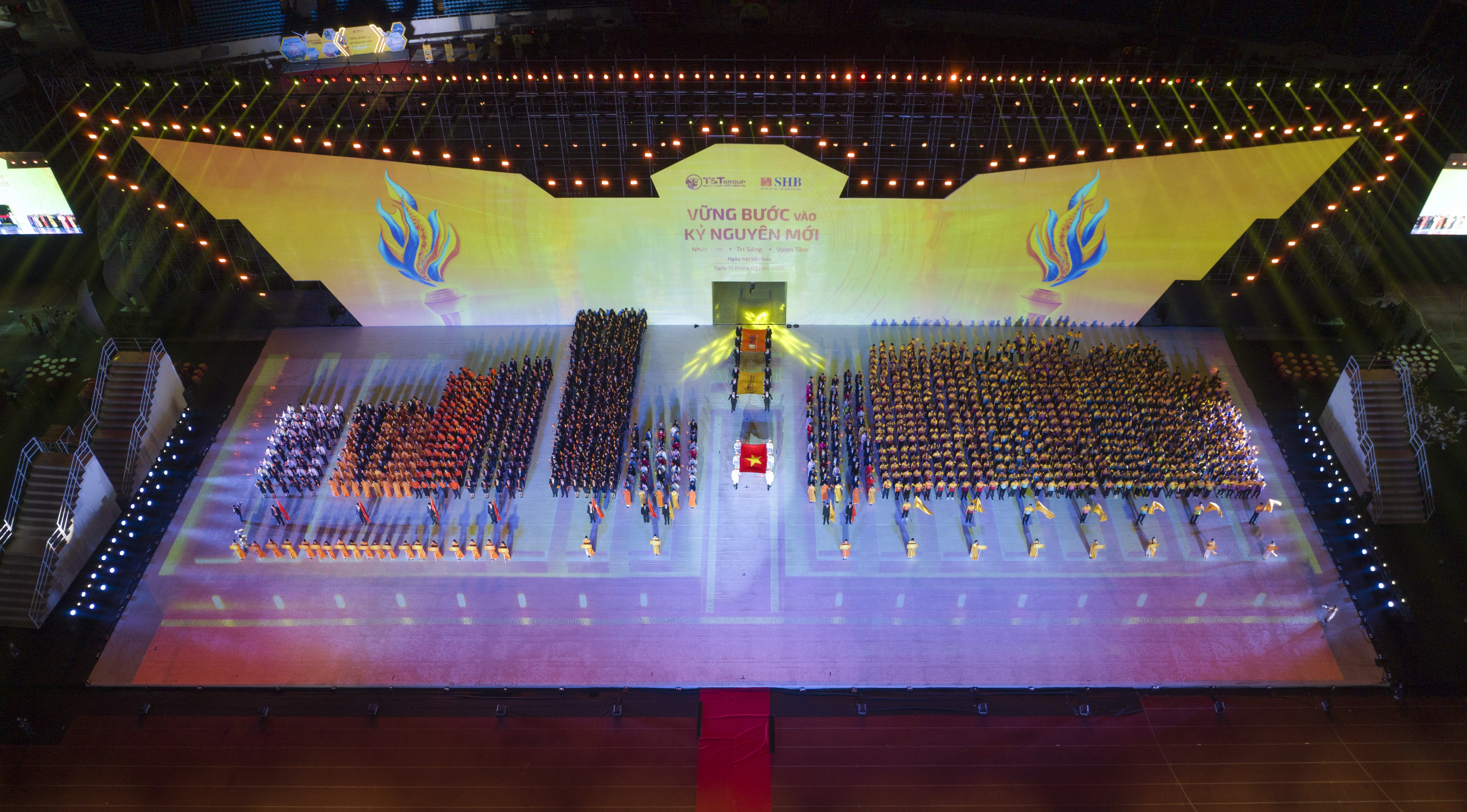 Không chỉ mang dấu ấn sáng tạo, công nghệ hiện đại và thể hiện tầm vóc doanh nghiệp, Ngày hội Văn hóa SHB – T&T 2025 còn là hành trình tôn vinh những giá trị truyền thống, kết hợp cùng tinh thần đổi mới để hướng tới tương lai. Niềm tự hào dân tộc và khát vọng vươn cao của SHB và T&T Group đã được khắc họa rõ nét qua ba chương của show diễn thực cảnh: Gây dựng – Lửa thiêng hùng khí Tiên Rồng, Gắn kết – Thắp sáng một vòng Đồng Tâm, và Vươn tầm – Cất cánh trong kỷ nguyên mới.