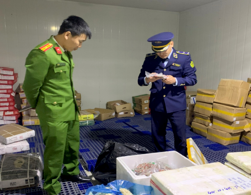 Qua kiểm tra, Đoàn kiểm tra phát hiện tại cơ sở đang bảo quản trong tủ đông 20 kg xúc xích không rõ nguồn gốc, xuất xứ để kinh doanh. Toàn bộ số hàng hóa trên không có giấy tờ, hóa đơn, chứng từ chứng minh nguồn gốc hợp pháp, trên sản phẩm không có nhãn hàng hóa, không có thông tin về nơi sản xuất và xuất xứ của hàng hóa, không có thông tin về ngày sản xuất, hạn sử dụng, nếu đưa vào sử dụng sẽ tiềm ẩn nguy cơ gây hại cho sức khỏe con người.