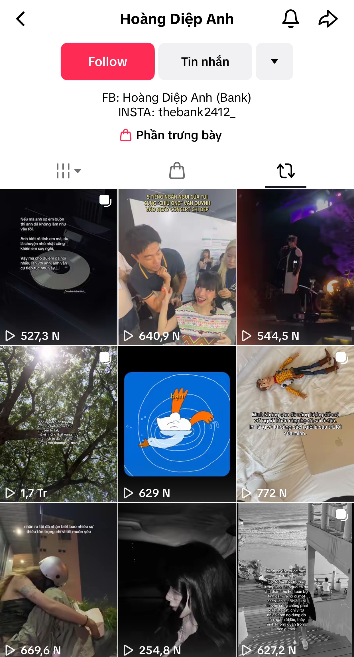 Những clip tâm trạng được Bank chia sẻ gần đây.