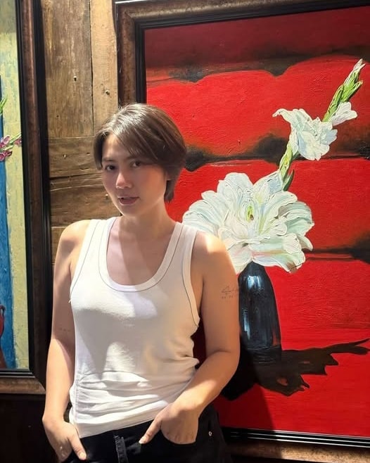 Không chỉ thay đổi kiểu tóc mà Ngọc Lan còn đổi gu thời trang sang phong cách menswear.