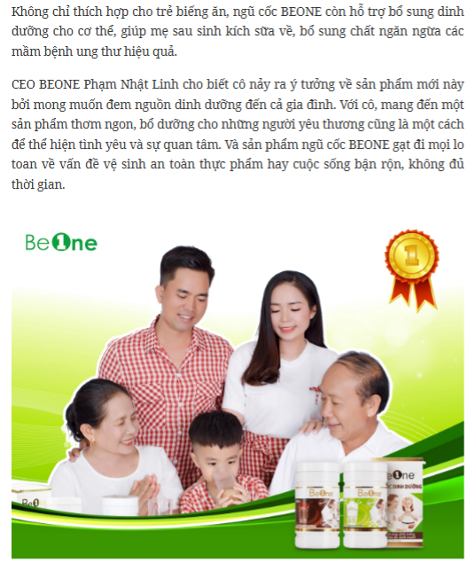 Trong bối cảnh thị trường thực phẩm dinh dưỡng ngày càng sôi động, sản phẩm ngũ cốc Beone đã nhanh chóng được nhiều người tiêu dùng biết đến nhờ chiến lược quảng cáo rầm rộ trên mạng xã hội, truyền hình và các kênh thương mại điện tử.