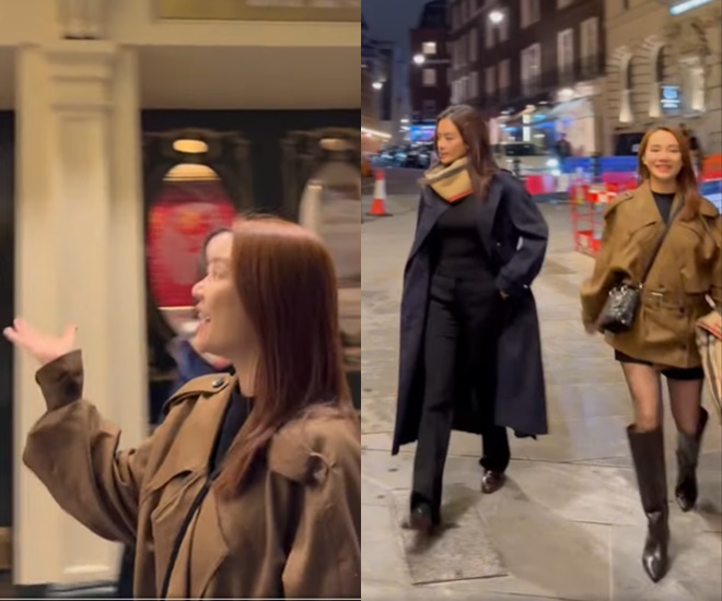 Xuất hiện trên đường phố London, Nhã Phương nhận vô số lời khen nhờ nhan sắc xinh đẹp cùng gu thời trang sang chảnh. Chung khung hình với Như Vân, mẹ 2 con được nhận xét không hề kém cạnh hoa hậu dù đang bầu lần 3.