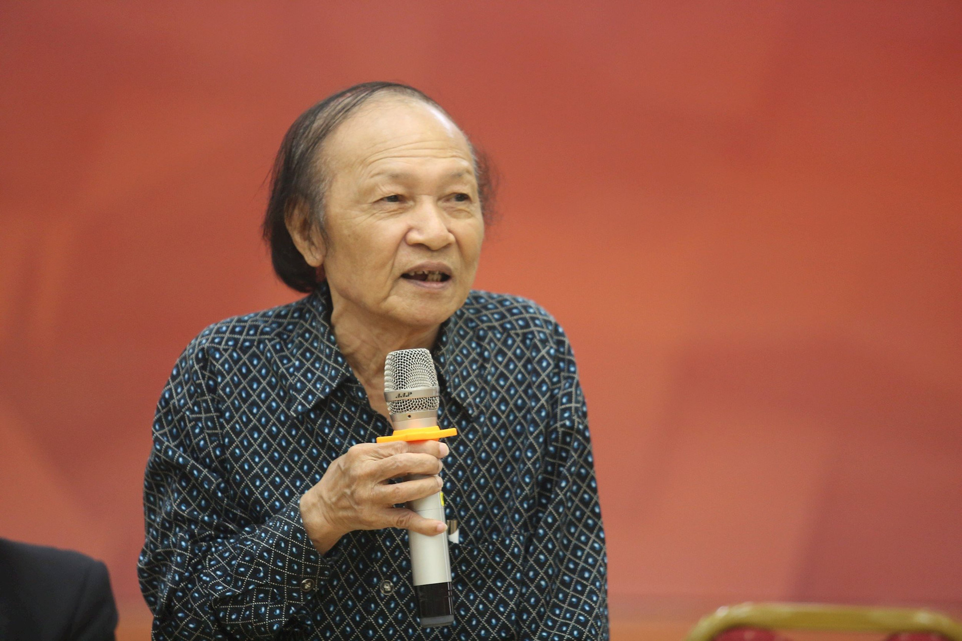 Nhà thơ, Nhạc sĩ Đoàn Bổng phát biểu tại buổi ra mắt cuốn sách “Bắt đầu từ đôi mắt”.