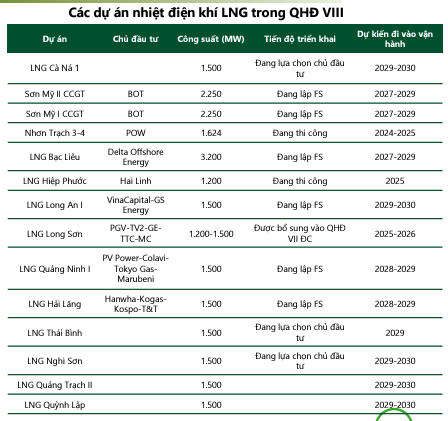 Ngoài ra, để bù đắp, các dự án khí nội địa cũng được đẩy mạnh khai thác. Dự kiến đến năm 2030, sẽ có khoảng 6,500 MW công suất nhiệt điện khí trong nước được triển khai, với 10 dự án, tổng công suất 8,740 MW.