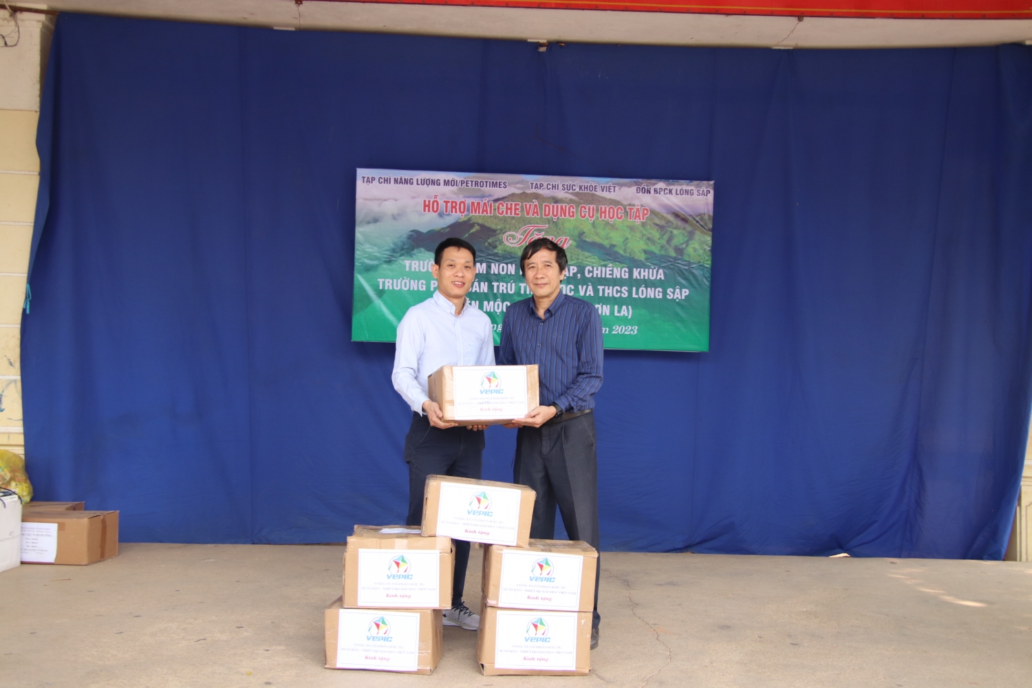 Công ty Cổ phần Đầu tư Thiết bị Giáo dục Việt Nam đã tặng Trường Phổ thông dân tộc bán trú TH và THCS Lóng Sập 636 cuốn sách giáo khoa Cánh Diều trị giá 12.000.000 đồng; Công ty Vinamilk tặng 20 thùng sữa;