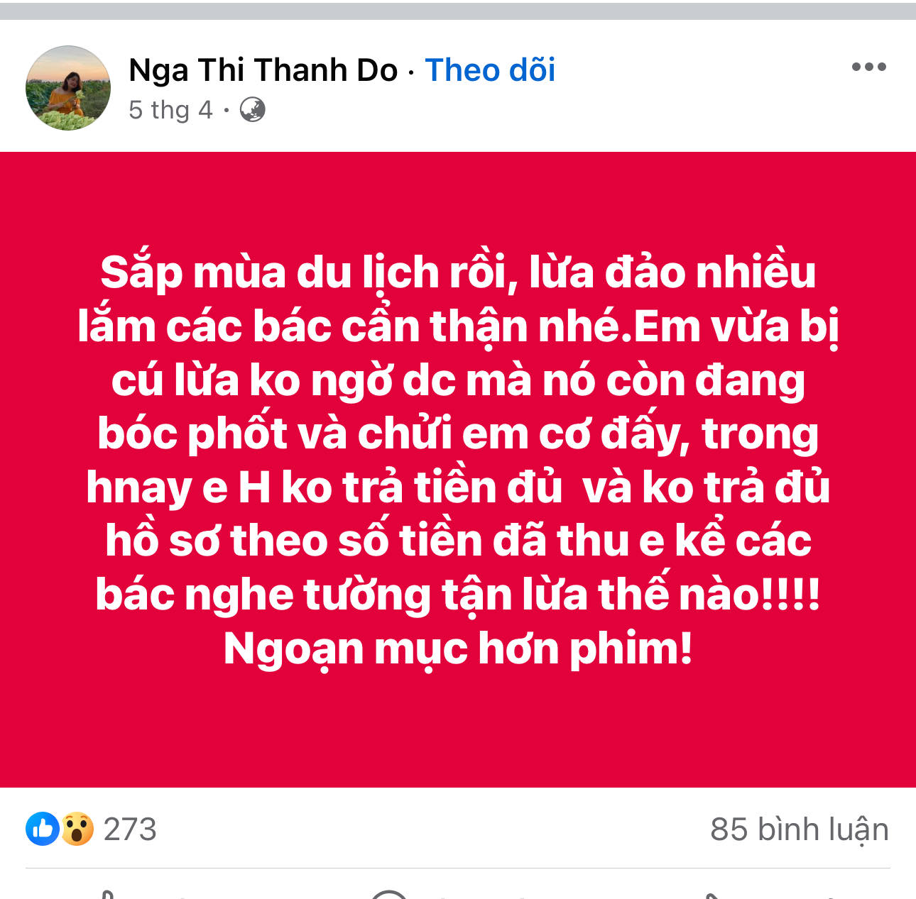 Ngay lúc đó chị Yến gọi điện cho người bán tour cho mình nhưng không liên lạc được. Họ chặn từ số điện thoại, Zalo, Facebook của chị Yến. Đến lúc này thì chị Yến biết chắc mình bị lừa.