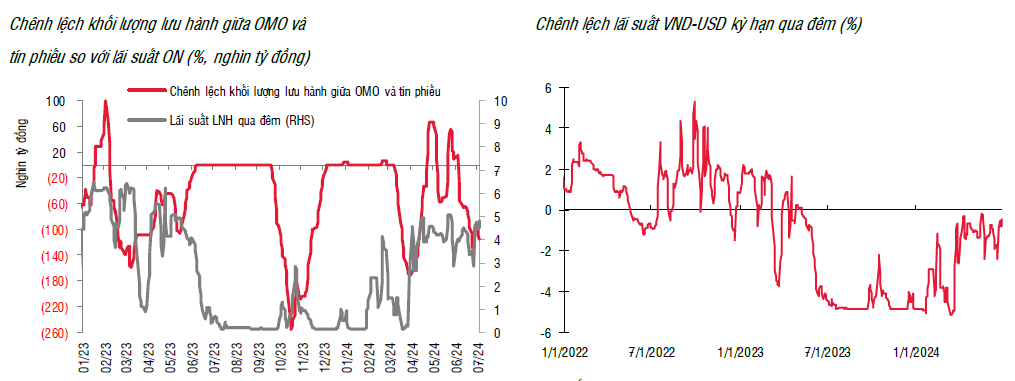Sau một tuần bơm ròng do yếu tố mùa vụ (cuối quý), NHNN đã quay trở lại trạng thái hút ròng trên kênh thị trường mở với tổng khối lượng là 21,1 nghìn tỷ đồng. Trong đó, việc phát hành tín phiếu được đẩy mạnh trong 3 ngày đầu tuần, với tổng khối lượng tín phiếu phát hành trong tuần lên tới 55,7 nghìn tỷ đồng trên tổng số 37,4 nghìn tỷ đáo hạn.
