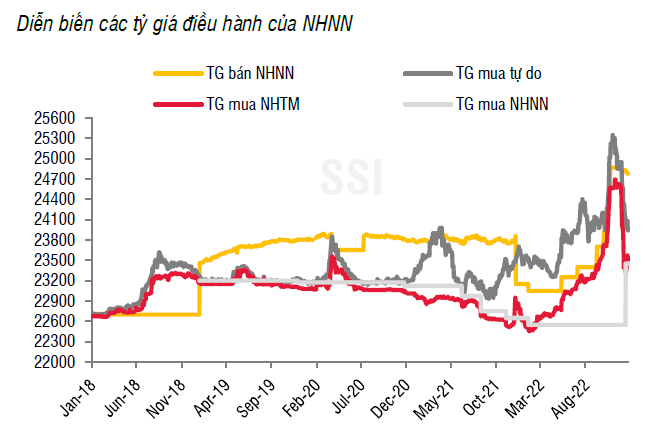 Nhìn chung, tâm lý găm giữ USD có thể đã được giải tỏa nhờ chênh lệch tăng cao giữa lãi suất huy động VND và USD. Bên cạnh đó, các yếu tố cơ bản liên quan đến nguồn cung ngoại tệ cũng có nhiều điểm tích cực, như dòng vốn FDI giải ngân, FII, cán cân thương mại thăng dư hay dòng tiền từ các khoản vay ngoại tệ mới được giải ngân. Chúng tôi kỳ vọng tỷ giá USD/VND kết thúc năm 2022 sẽ ở quanh vùng hiện tại, tương đương với mức mất giá khoảng 3.8% so với cuối năm 2021.
