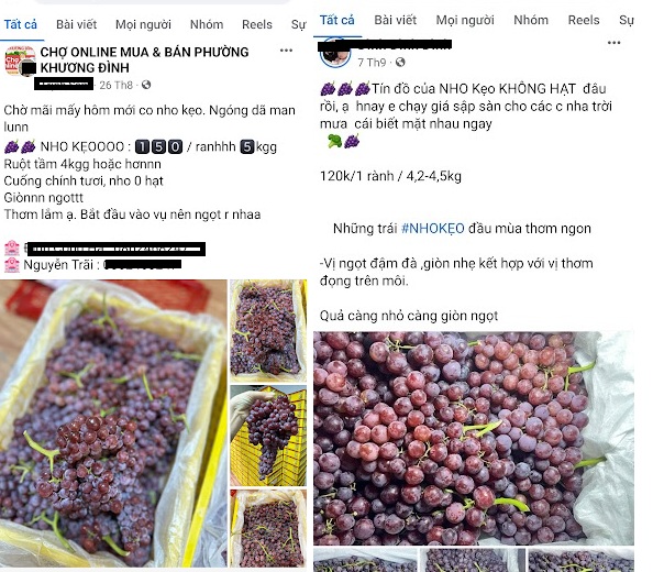 Trên chợ mạng, nhiều người rao bán loại nho này theo thúng, theo rành