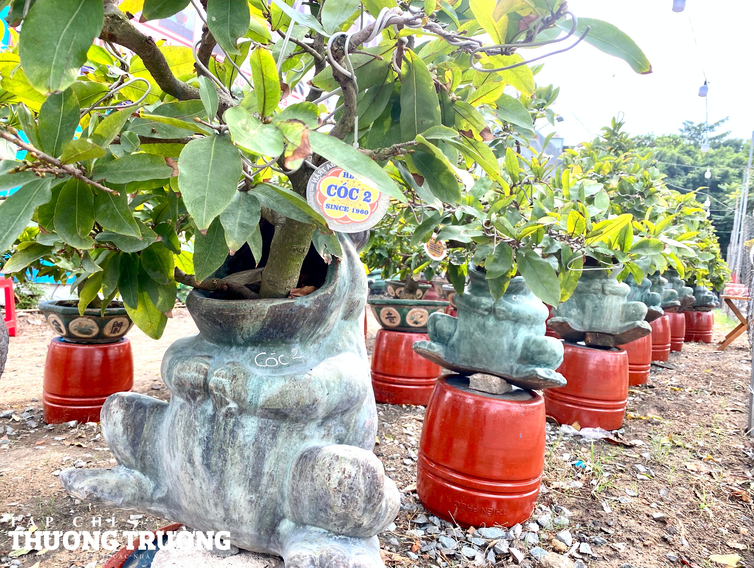 Năm nay, tại vườn mai Hà Ba Trận đưa ra thị trường mẫu "cóc ngậm mai" thu hút tài lộc với giá chỉ vài triệu đồng/cây.