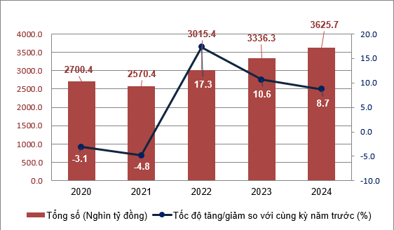 Tổng mức bán lẻ hàng hóa và doanh thu dịch vụ tiêu dùng theo giá hiện hành 7 tháng các năm 2020-2024