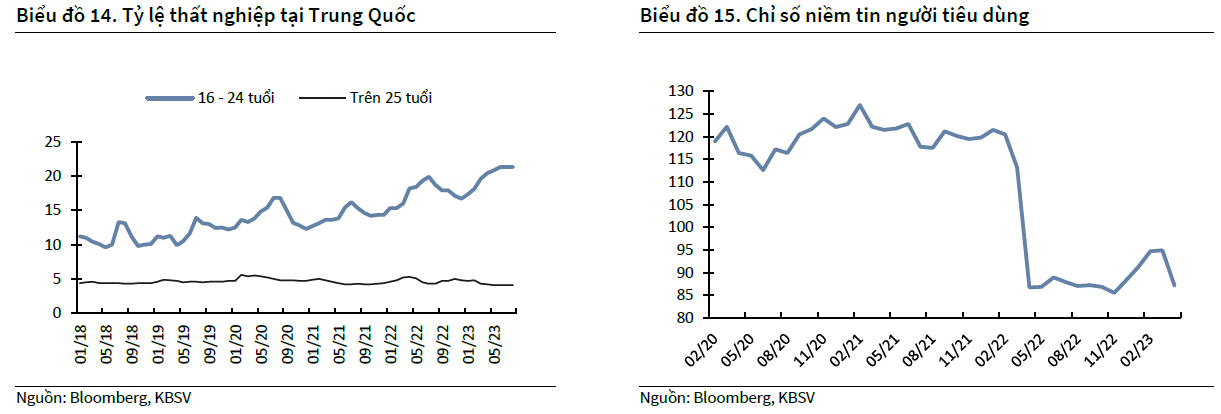 Trong giai đoạn Covid 19, chi tiêu hộ gia đình đã vượt xa thu nhập khiến vay nợ trong giai đoạn này tăng cao. Theo đó, dù lãi suất hiện tại thấp kỷ lục, các hộ gia đình cũng không có nhu cầu vay thêm, khiến các chính sách tiền tệ kích cầu kém phát huy tác đụng. Tâm lý người tiêu dùng và nhà sản xuất tại Trung Quốc vẫn rất thận trọng và tỷ lệ thất nghiệp ở thanh niên cao, khiến cho cho triển vọng về hồi phục nhu cầu nội địa rất mù mờ.
